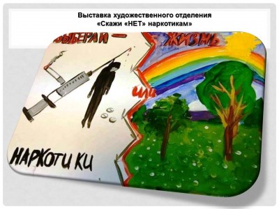«Скажи наркотикам — НЕТ!» — так называется выставка учащихся художественного отделения Сходненская детской школы искусств, которая проходит в рамках Всероссийского антинаркотического месячника. Акция посвящена Международному дню борьбы с наркоманией и направлена на популяризацию здорового образа жизни
