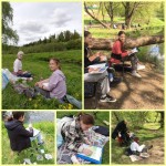 Сегодня учащиеся рисовали на территории храма Святой Троицы на Сходне, в парке в Подрезково, ходили на улицу Овражная к речке. Содержание программы «Пленэр» нацелено на формирование культуры творческой личности, на приобщение учащихся к миру искусства, общечеловеческим и национальным ценностям через их собственное творчество и освоение художественного опыта прошлого. Приобщение к основам изобразительного искусства осуществляется через практические занятия в школе и на воздухе. Рисование с натуры природных форм, архитектуры, животных и человека, является основным видом заданий во время пленэрной практики